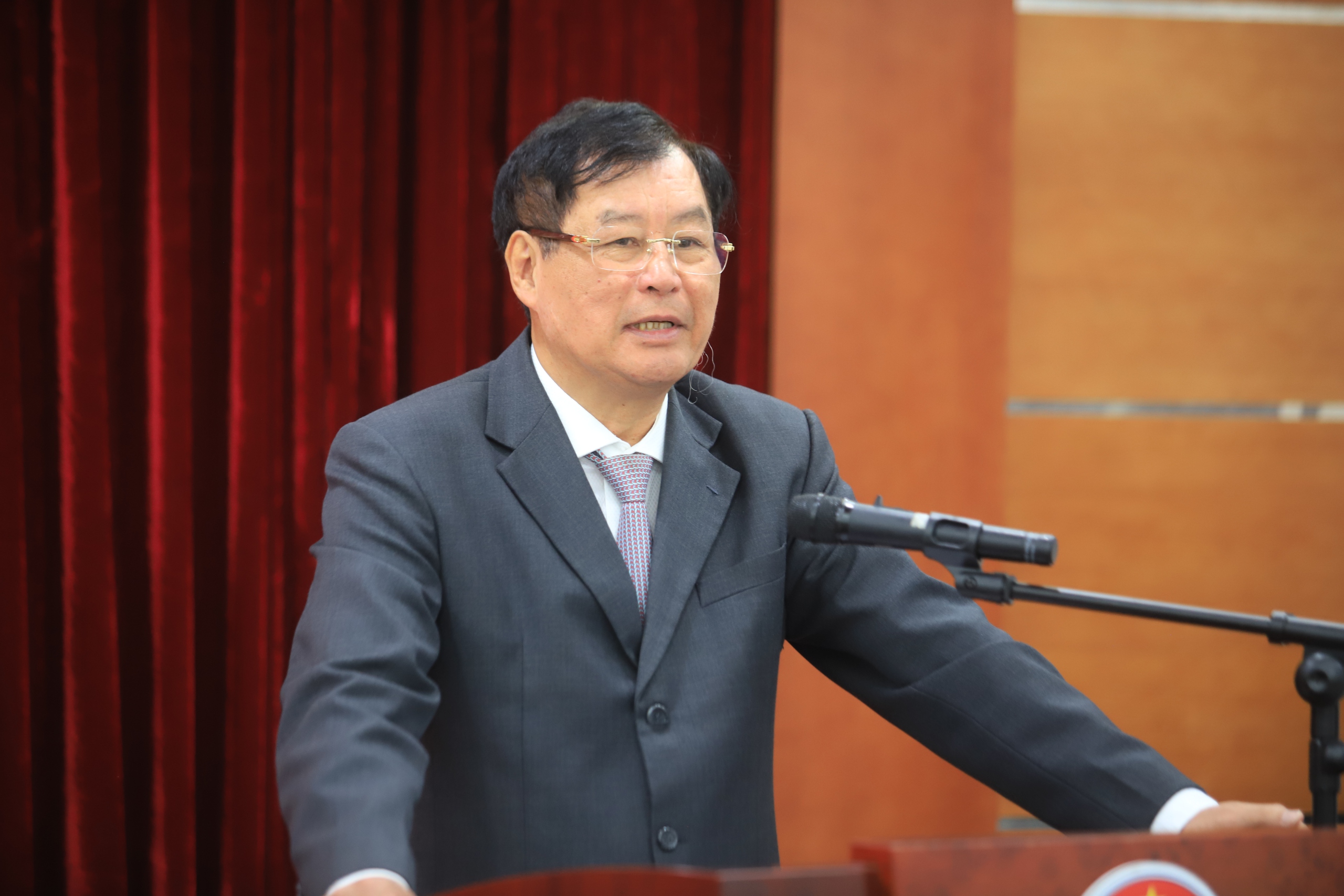 Bí thư Đảng ủy, Chủ tịch Hội Luật gia Việt Nam Nguyễn Khánh Ngọc phát biểu tại hội nghị.