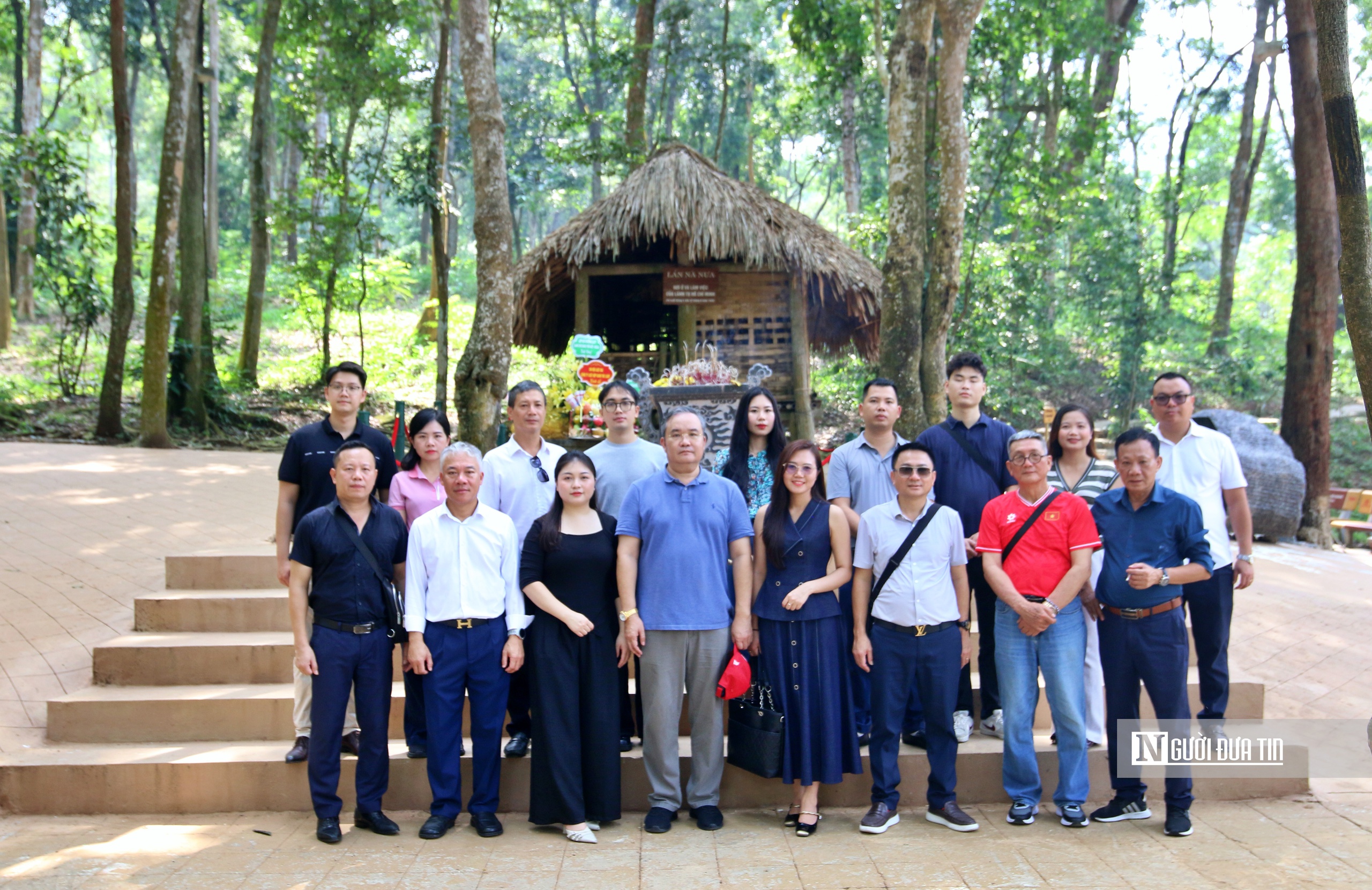 Chi hội dâng hương và chụp ảnh lưu niêm tại di tích lán Nà Nưa (khu ATK Tân Trào, Tuyên Quang).