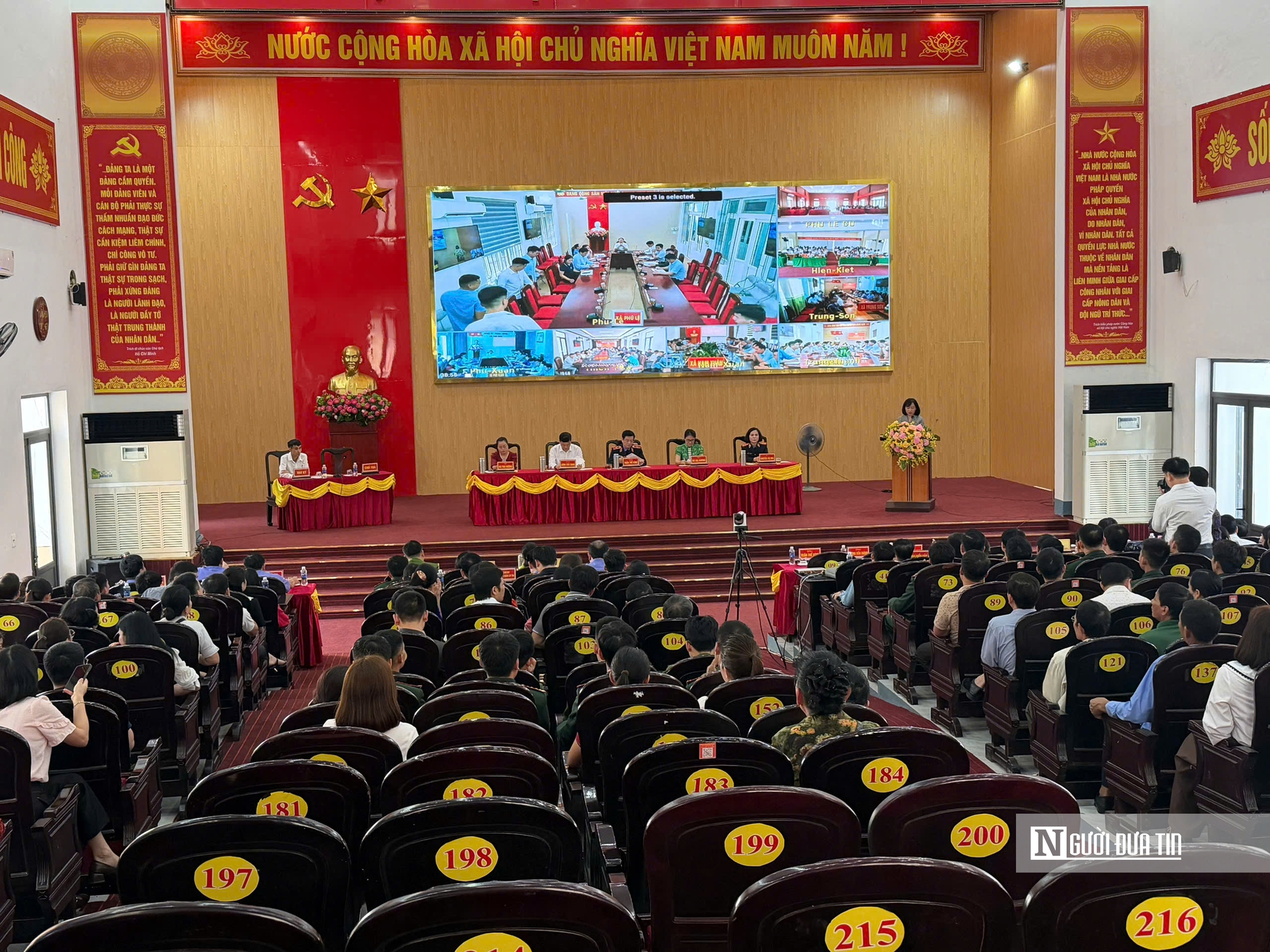 Hội nghị tiếp xúc cử tri của các ứng cử viên HĐND tỉnh Thanh Hóa được kết nối trực tuyến với các điểm cầu xã: Phú Lệ, Phú Xuân, Nam Xuân, Hiền Kiệt, Trung Sơn, Trung Thành, Trung Sơn, Thiên Phủ.