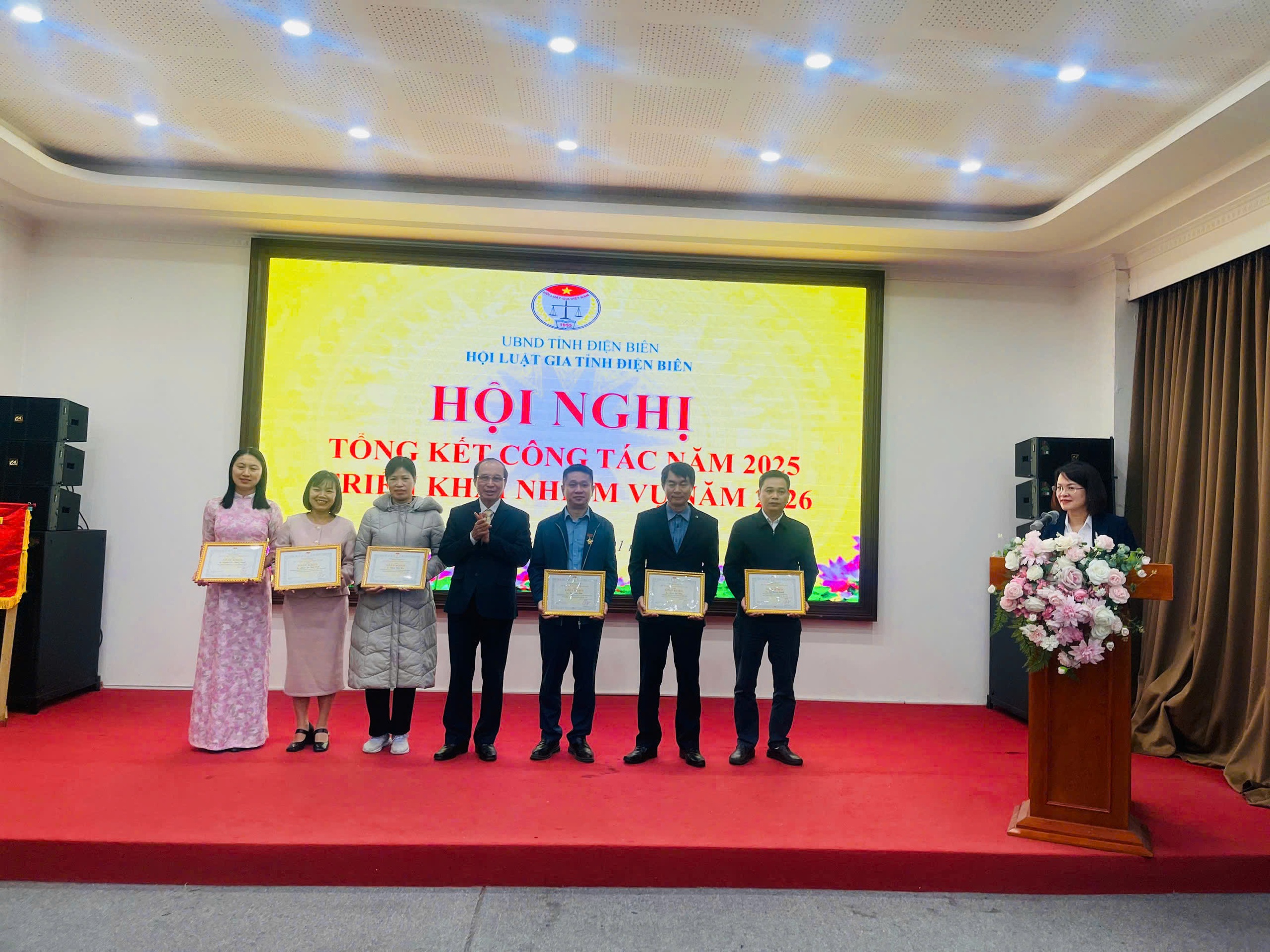 Ghi nhận những kết quả, thành tích nổi bật của cán bộ, hội viên các Luật gia năm 2025, Hội Luật gia tỉnh Điện Biên có 04 tập thể 04 cá nhân được Chủ tịch Hội Luật gia Việt Nam tặng Bằng khen; 10 cá nhân được nhận Kỷ niệm chương năm 2025 và 03 tập thể, 08 cá nhân được Chủ tịch Hội Luật gia tỉnh tặng Giấy khen.