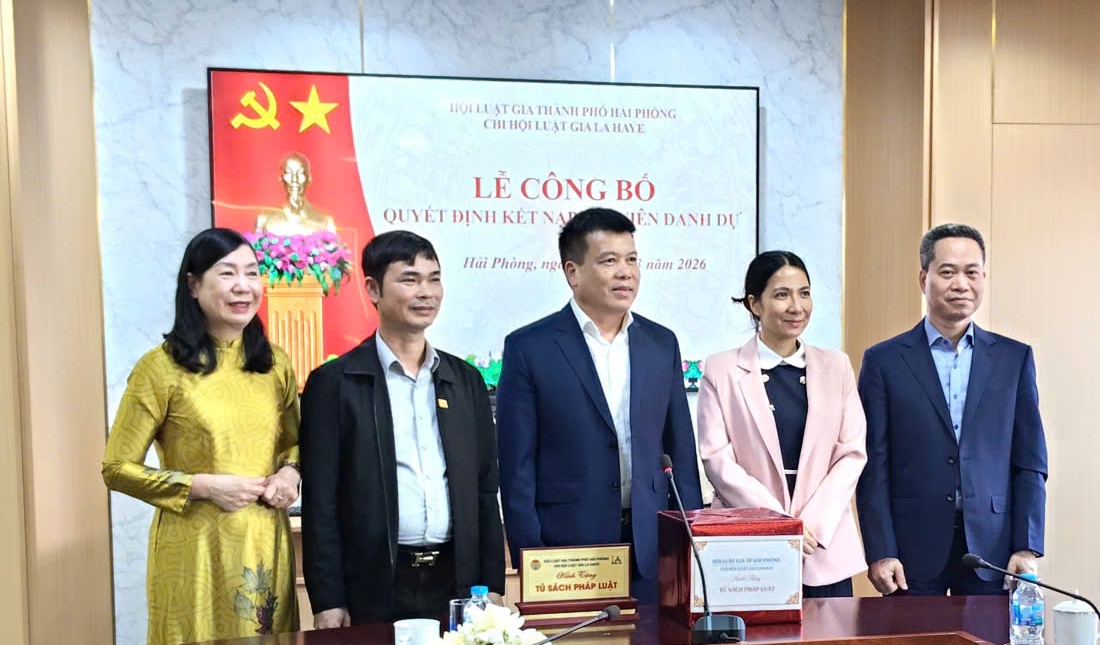 Nhằm tăng cường gắn kết giữa tổ chức Hội Luật gia với cộng đồng doanh nghiệp, đồng thời đẩy mạnh công tác phổ biến, giáo dục pháp luật tại cơ sở, mới đây, Hội Luật gia Tp.Hải Phòng phối hợp với Chi hội Luật gia La Haye tổ chức lễ công bố quyết định kết nạp hội viên danh dự tại Công ty Cổ phần Đầu tư và Phát triển Cảng Đình Vũ.