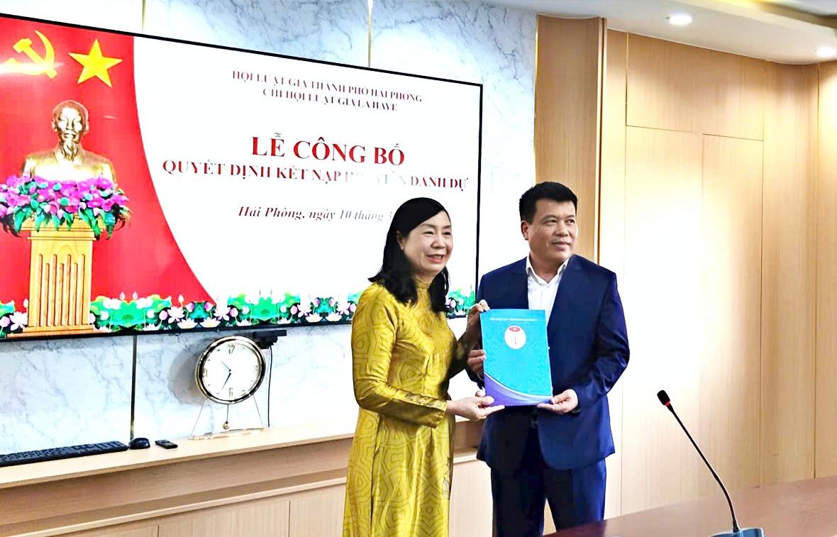 Tại buổi lễ, bà Lâm Bích Ngọc – Phó Chánh Văn phòng Hội Luật gia Tp.Hải Phòng đã công bố quyết định kết nạp hội viên danh dự của Chi hội Luật gia La Haye. Theo đó, ông Cao Văn Tĩnh - Giám đốc Công ty Cổ phần Đầu tư và Phát triển Cảng Đình Vũ được kết nạp là hội viên danh dự.