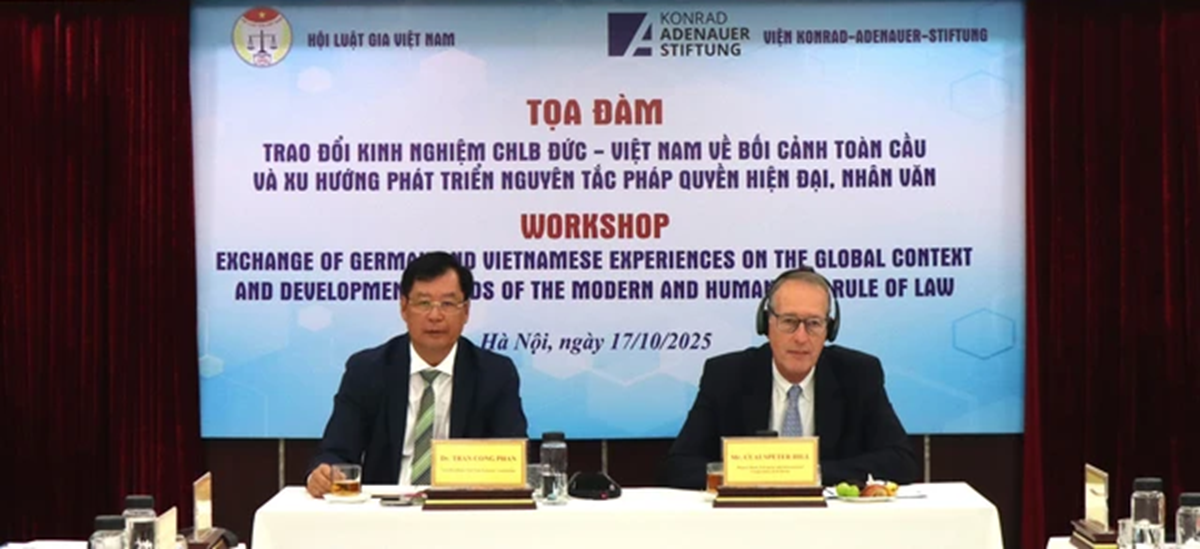 - Chia sẻ kinh nghiệm về xây dựng nhà nước pháp quyền giữa Việt Nam và ĐứcSáng 17/10, Hội Luật gia Việt Nam phối hợp với Viện Konrad Adenauer Stiftung (KAS) tại Việt Nam tổ chức tọa đàm trao đổi kinh nghiệm Cộng hòa Liên bang Đức – Việt Nam về bối cảnh toàn cầu và xu hướng phát triển nguyên tắc pháp quyền hiện đại, nhân văn.