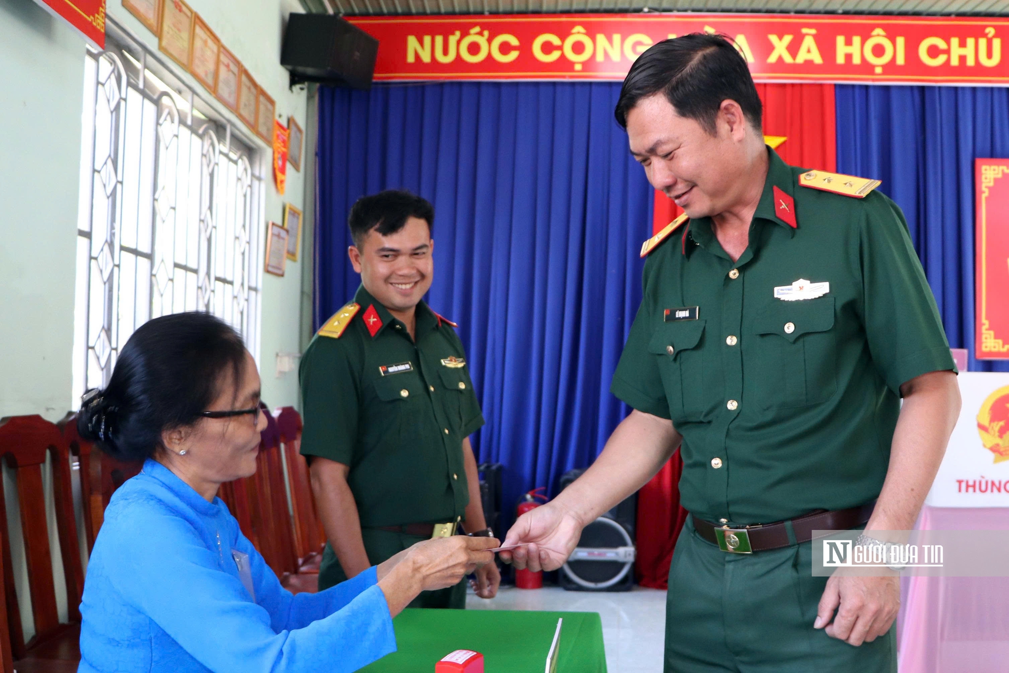 Đại diện Tổ bầu cử phổ biến nội quy phòng bỏ phiếu, thể lệ bầu cử; đồng thời tiến hành kiểm tra, niêm yết thùng phiếu chính và thùng phiếu phụ (di động) trước sự chứng kiến của cử tri.