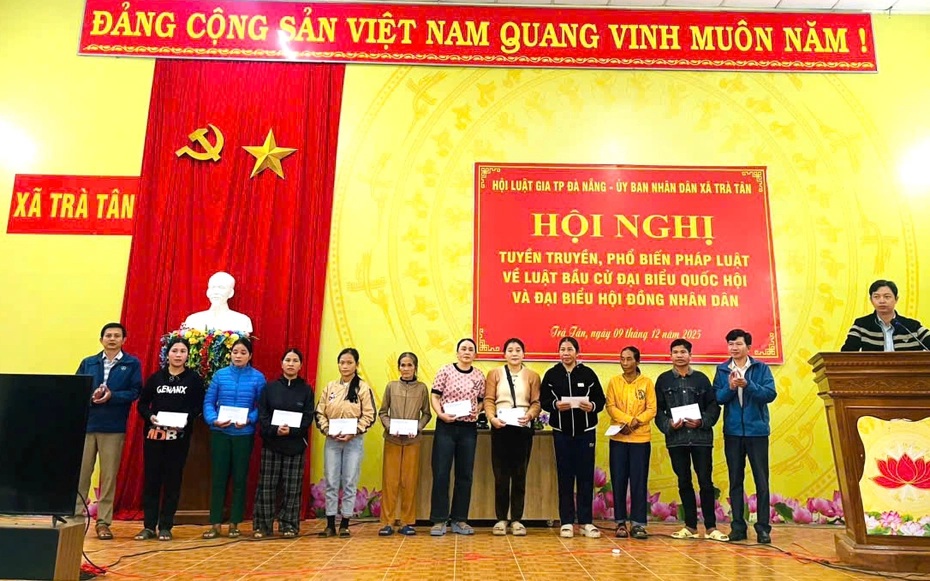 Đà Nẵng: Củng cố niềm tin nhân dân qua công tác tuyên truyền pháp luậtTại xã Trà Tân, Hội Luật gia thành phố Đà Nẵng phân tích các điểm mới của Luật Bầu cử và trao quà hỗ trợ cho người dân bị thiệt hại do bão, khẳng định sự đồng hành của hệ thống chính trị với cơ sở.