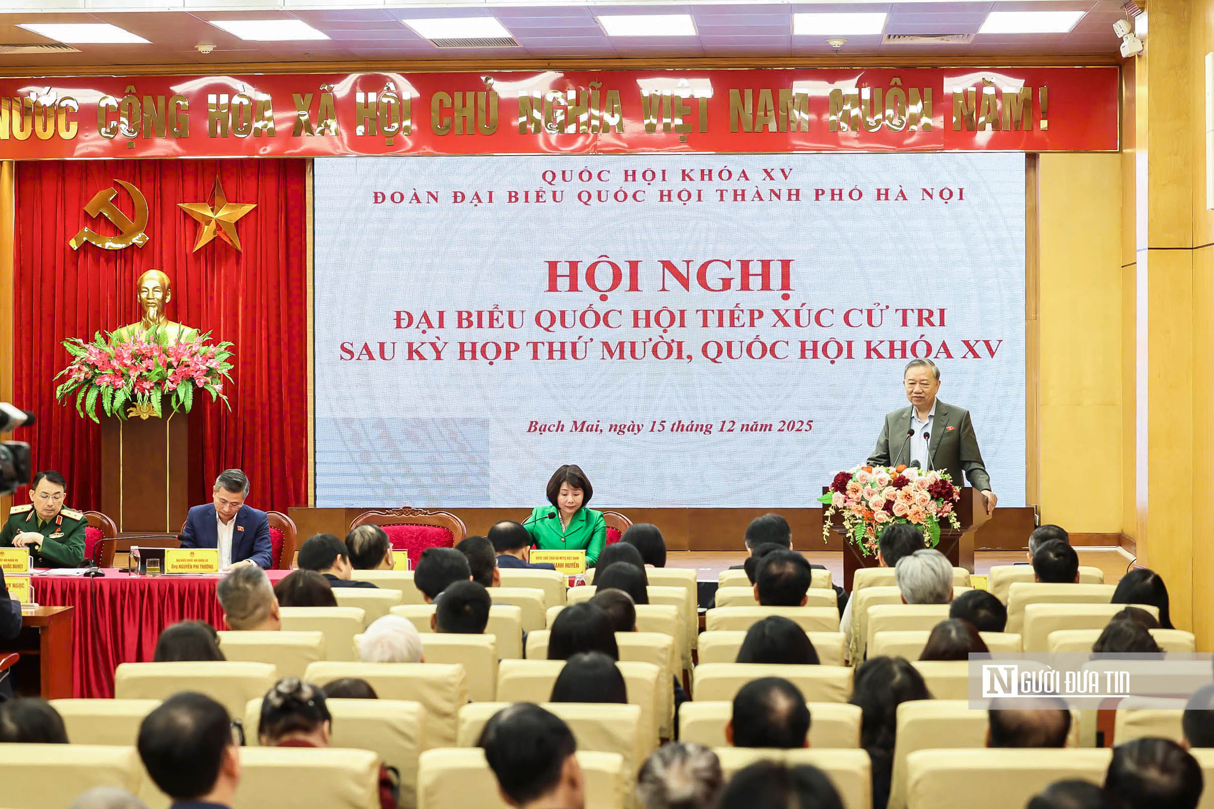 Tổng Bí thư Tô Lâm phát biểu tại hội nghị tiếp xúc cử tri 11 phường ở Hà Nội sáng ngày 15/12 (Ảnh: Hữu Thắng).