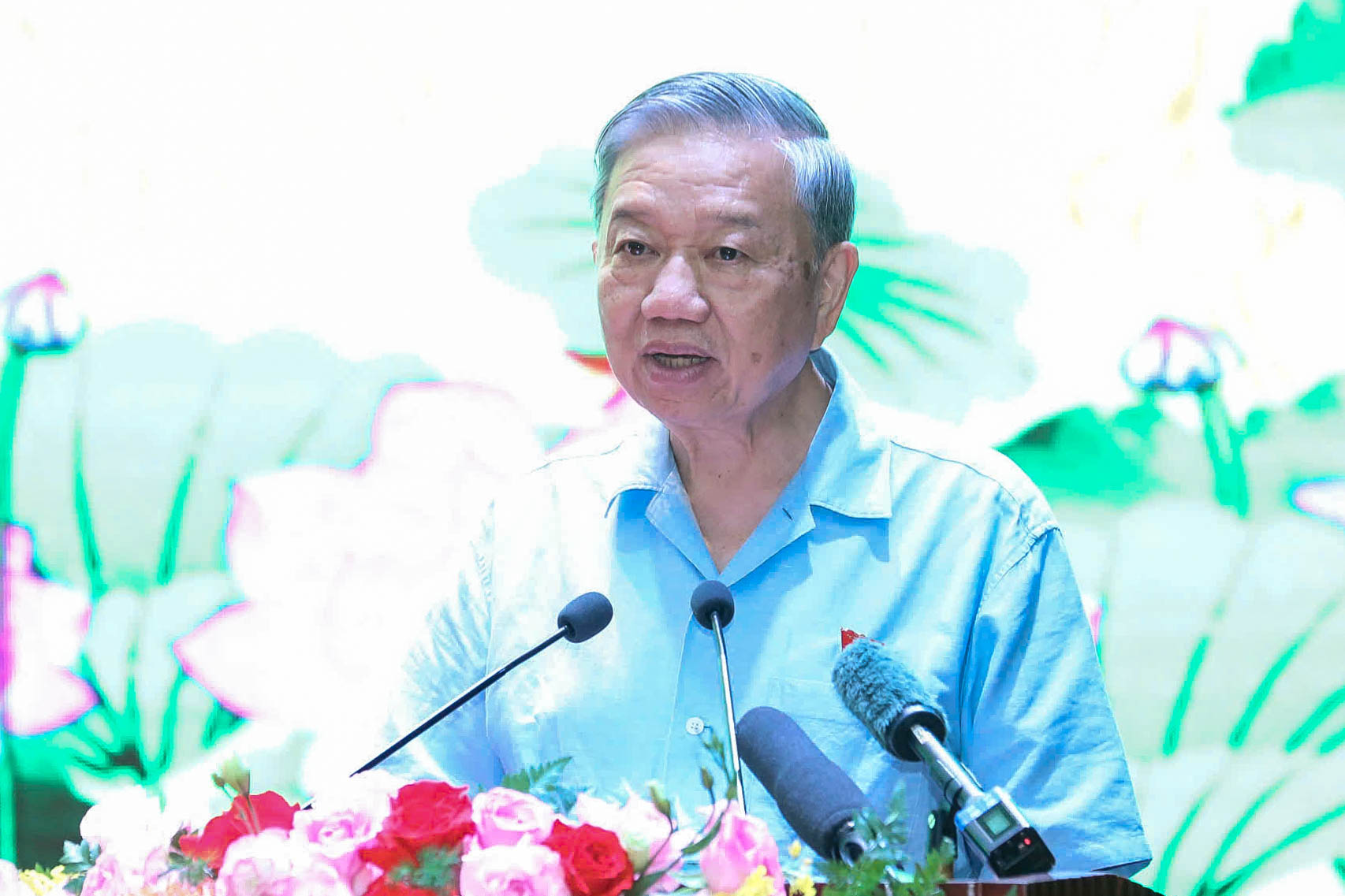 Tổng Bí thư Tô Lâm phát biểu tại hội nghị tiếp xúc cử tri (Ảnh: Phạm Hùng)
