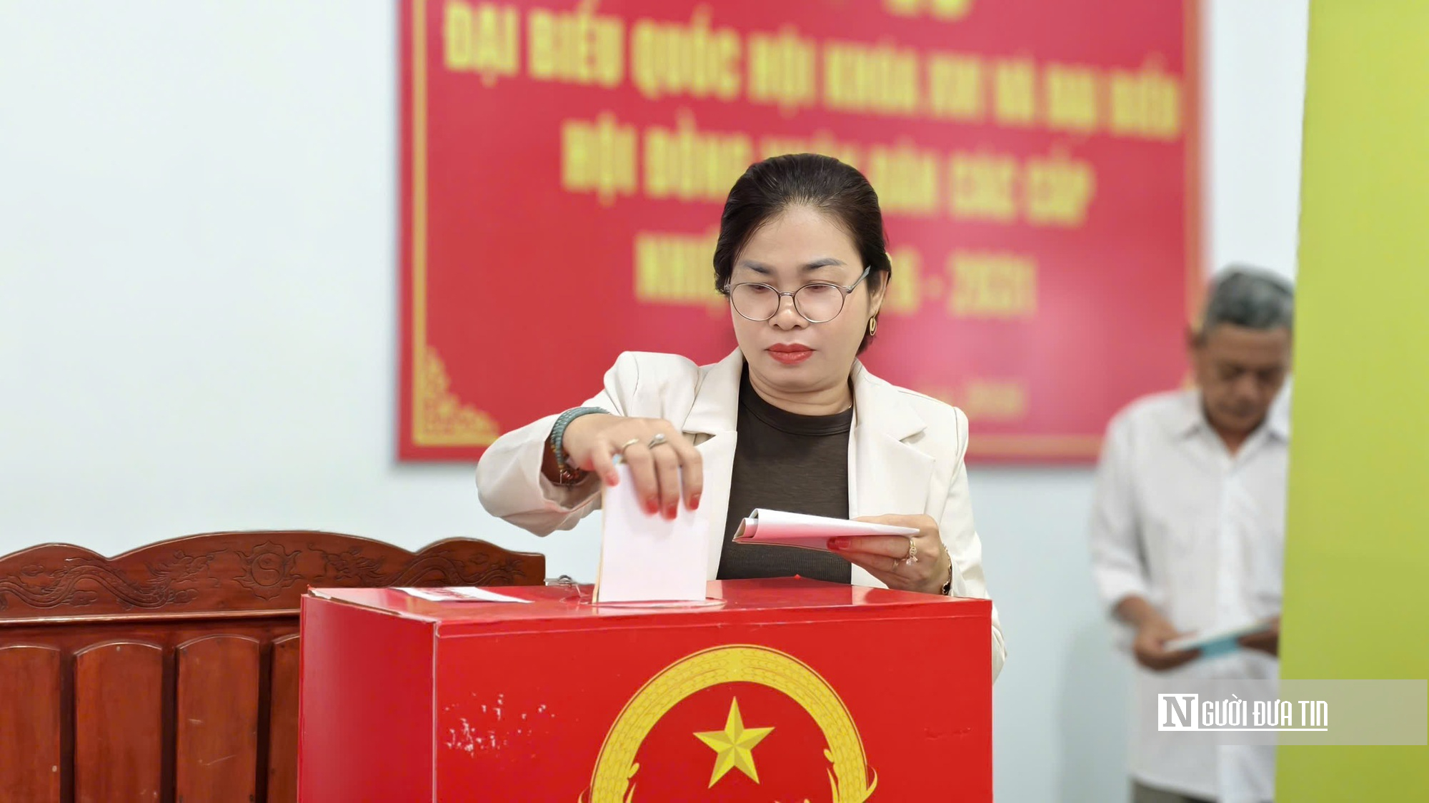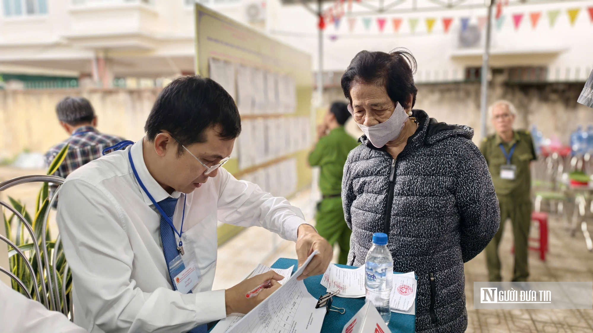 Sau các nghi thức theo quy định, Bí thư Tỉnh ủy Quảng Ngãi Hồ Văn Niên và Chủ tịch UBND tỉnh Nguyễn Hoàng Giang đã bỏ những lá phiếu đầu tiên tại khu vực bỏ phiếu này.